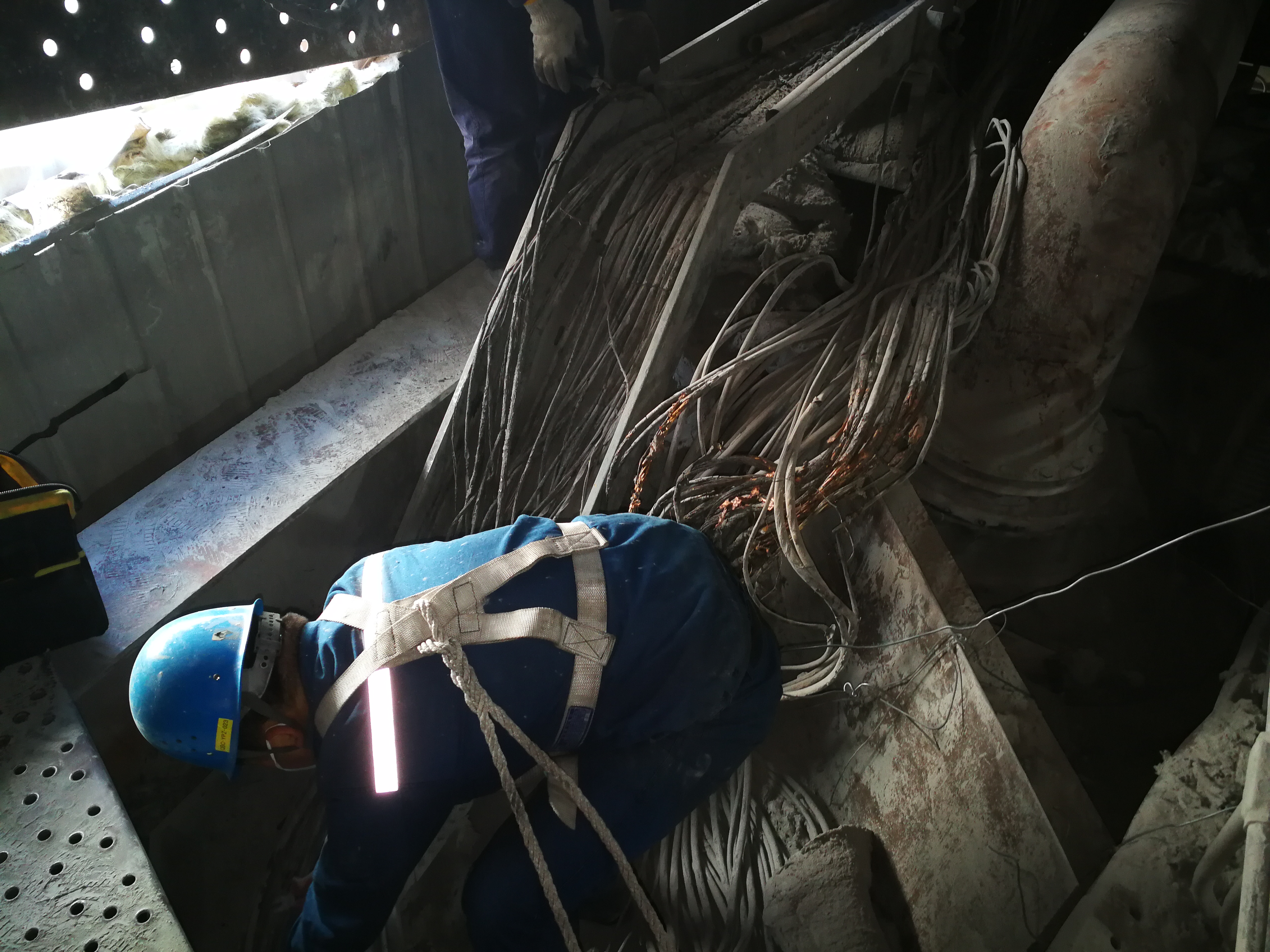 清水川能源#2爐A側熱一次風管道接口漏風,泄漏的熱風將大量熱工測量電纜絕緣燒壞,5月9日,項目部組織人員全力以赴完成燒壞電纜的對接工作。