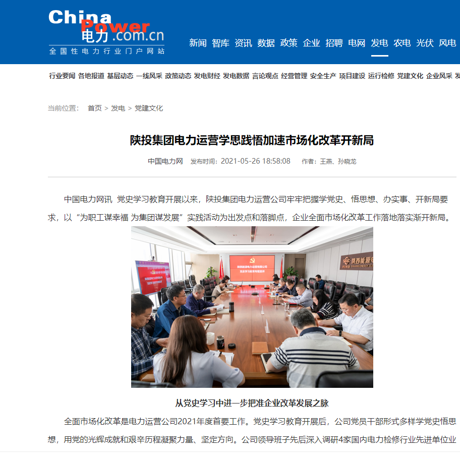 黨史學習教育開展以來,電力運營公司牢牢把握學黨史、悟思想、辦實事、開新局要求,以“為職工謀幸福 為集團謀發展”實踐活動為出發點和落腳點,企業全面市場化改革工作落地落實漸開新局。