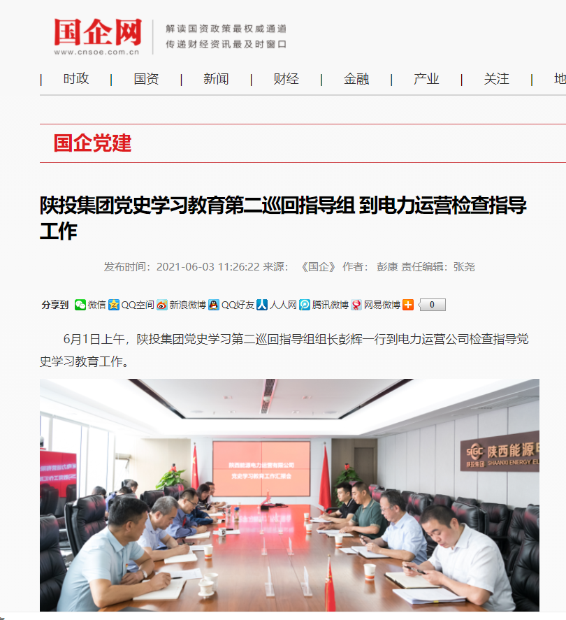 6月1日上午,陜投集團黨委黨史學習教育第二巡回指導組組長、集團機關黨委副書記彭輝一行到公司檢查指導黨史學習教育工作。
