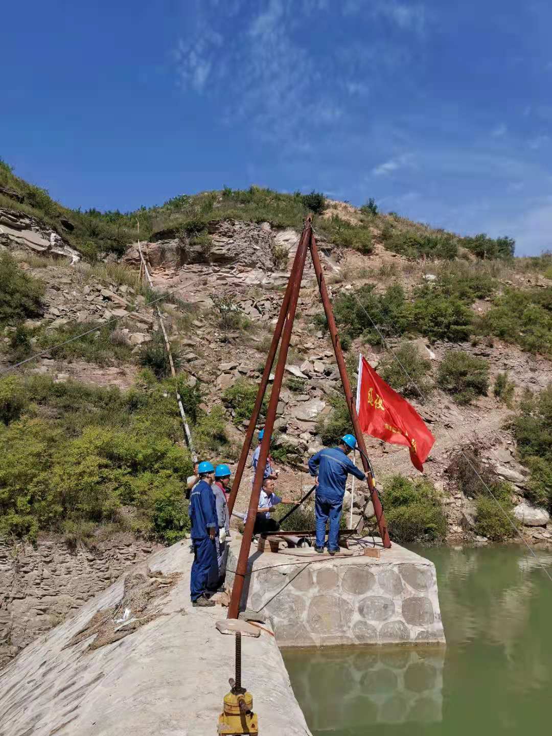 到了溝底,查設備,巡線路,找問題,隊員們馬不停蹄投入搶修工作。頭頂著火辣辣的太陽,眼前雖是一汪碧水,可溝里一絲風也沒有,溫度超過40℃。人站在河壩上即使不干活,一會兒就汗流浹背,頭暈目眩。工作中,大家不時抹一把臉上、身上的汗,開玩笑說:“魚在下面的河水里游泳,我們在岸上的汗水里游泳。”可為了打通這條關乎全村的“生命線”,大家臨深淵,沒有一個人臨陣退縮;涉險灘,始終沒有一句怨言。