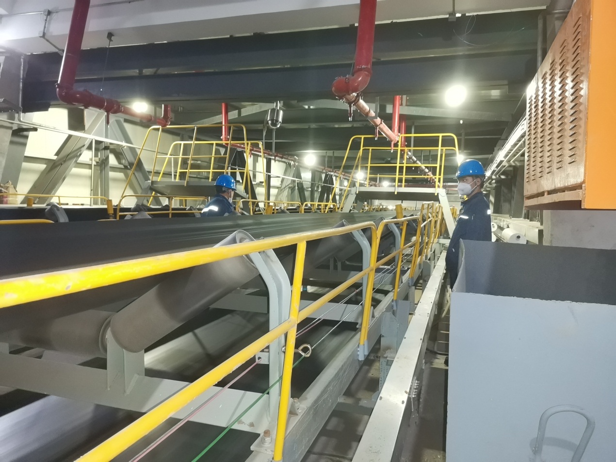 9月15日,吉木薩爾發電公司輸煤廠內系統整套帶負荷試運,吉木薩爾項目部輸煤巡檢人員參與試運上煤工作,檢修班到場記錄設備試運缺陷。
