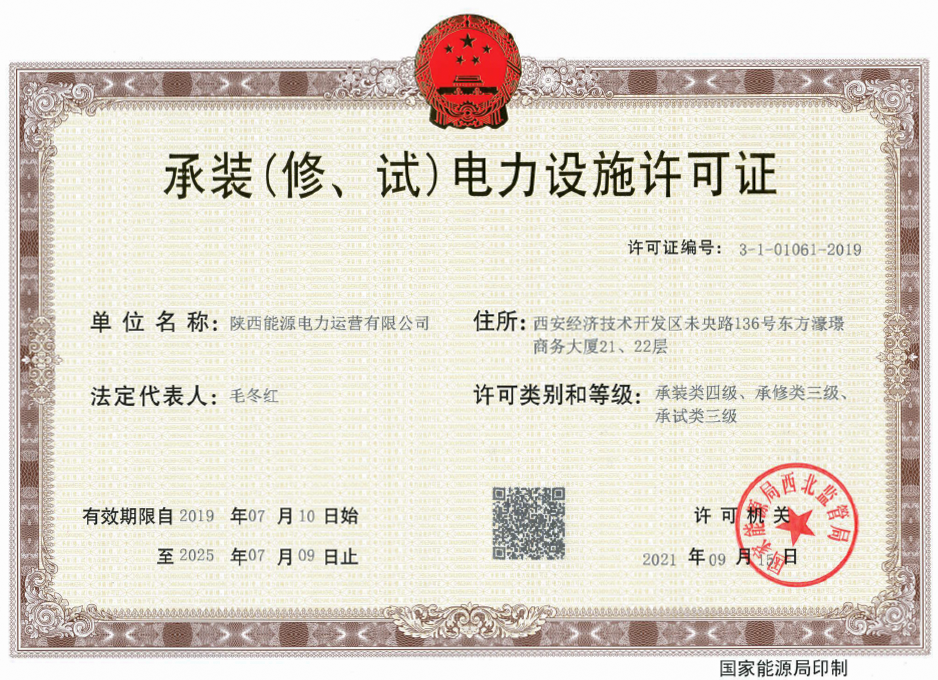 9月22日,公司順利通過國(guó)家能源局西北監(jiān)管局的評(píng)審,喜獲承裝(修、試)(承裝四級(jí)、承修三級(jí)、承試三級(jí))電力設(shè)施施工許可證。