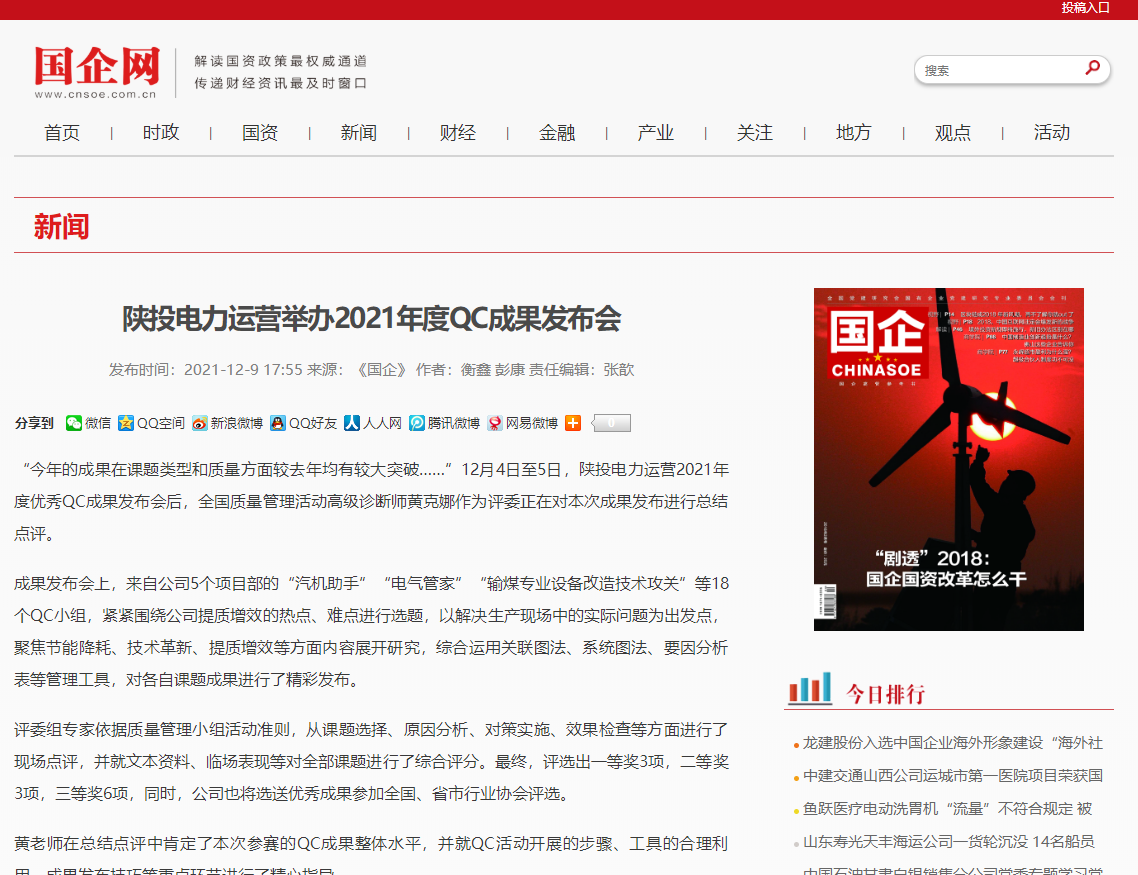 12月4日至5日,電力運營公司舉行2021年度優秀QC成果發布會,來自5個項目部的“汽機助手”“電氣管家”“輸煤專業設備改造技術攻關”等18個QC小組,以解決生產現場中的實際問題為出發點,聚焦節能降耗、技術革新、提質增效等方面,綜合運用關聯圖法、系統圖法、要因分析表等管理工具,對各自課題成果進行了精彩發布。評委組專家從課題選擇、原因分析、對策實施、效果檢查等方面進行了現場點評,并就文本資料、臨場表現等進行了綜合評分。最終,評選出一等獎3項,二等獎3項,三等獎6項,繼續參加全國、省市行業協會評選。