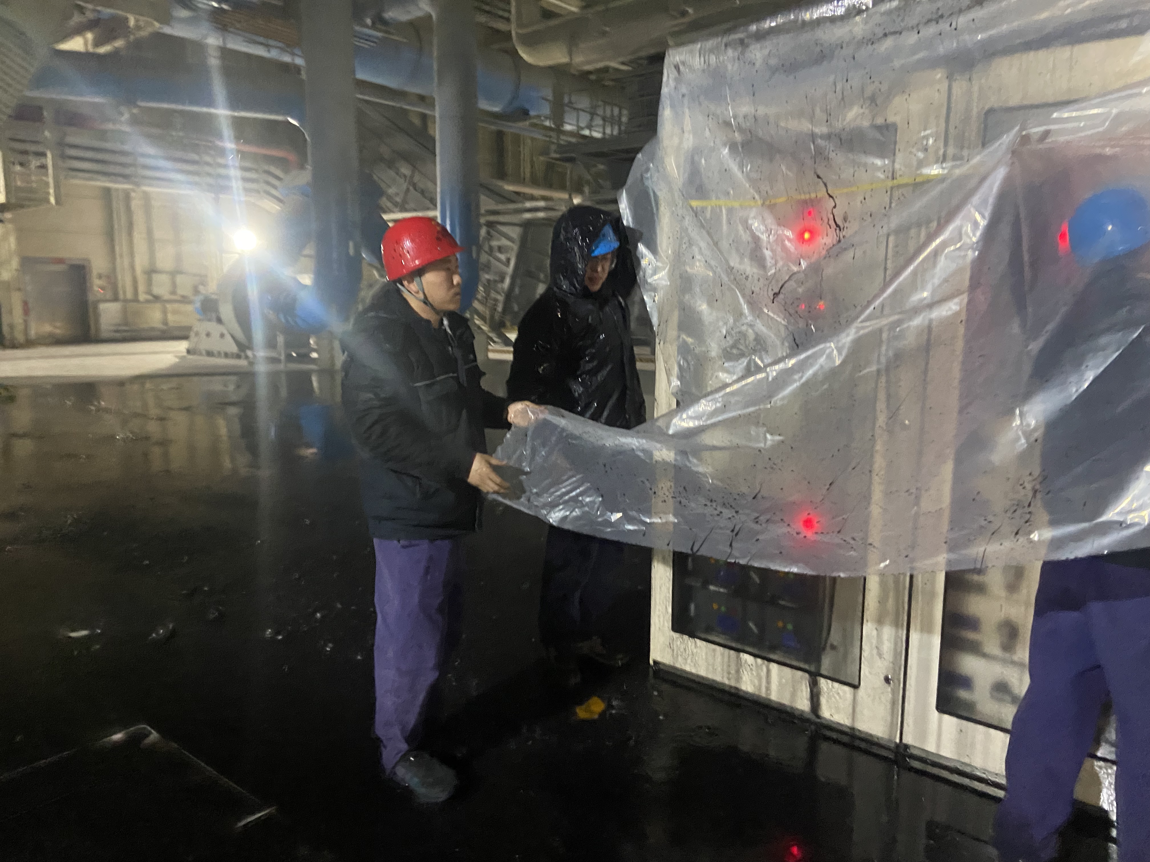 12月5日下午6:50,#3爐主電動給水門泄漏,專業主管立刻組織大家帶著塑料布、膠帶趕往現場,大到盤柜、磨煤機接線盒,小至磨煤機加熱器接線盒、檢修箱都覆蓋起來細心呵護,防止設備被淋濕造成故障。