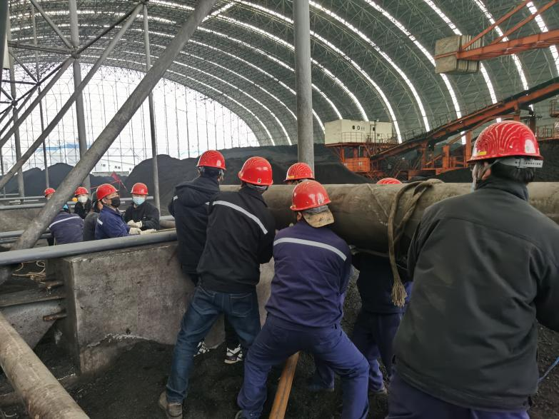 商洛項(xiàng)目部黨支部組織開(kāi)展“戰(zhàn)疫保供一線,黨旗高高飄揚(yáng)”煤場(chǎng)排雨母管倒運(yùn)主題黨日活動(dòng),助力保電保熱。寒冷的煤場(chǎng)里,卻是如火如荼的景象,由于煤場(chǎng)內(nèi)無(wú)法使用起吊設(shè)施,直徑450mm的管道只能靠人力移動(dòng)、安裝至指定位置。大家喊著號(hào)子,使出渾身力氣,管道也只能微微前進(jìn)一點(diǎn)。一米、兩米……沉重的管道逐步就位。