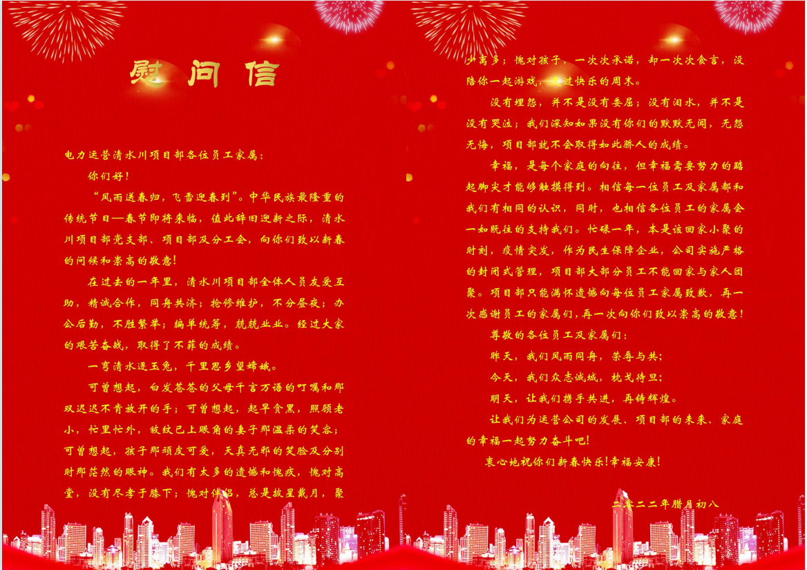1月10日,一封慰問信通過清水川項目部員工傳遞給遠方的家屬,安靜的員工群瞬間被點燃了。