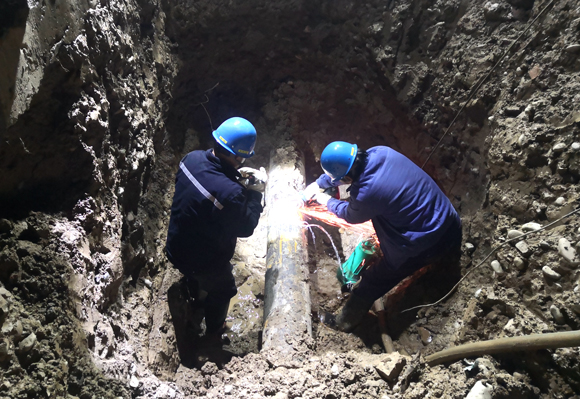 近日,渭河發(fā)電#5機(jī)組循泵房外因路面地基沉陷造成消防水主管道管道部分?jǐn)嗔?,?yán)重影響到消防系統(tǒng)的正常運行。接到搶修任務(wù),渭河項目部立即行動,查看泄漏狀況、研討堵漏方案。因消防系統(tǒng)未能完全隔離,管道中水流不斷,給焊補工作造極大的成困難。