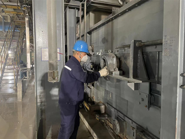 在#3機干渣機檢修中,為高質量完成干排渣鋼帶機檢修工作,他不怕臟,不怕累,積極配合運行開關液壓關斷門。截取鋼帶需要高超的技術和經驗,需判斷截斷鋼帶的最佳位置、網口交叉連接等,尤其是在調整鋼帶的張緊裝置時,兩邊張緊的距離必須保持一致,避免鋼帶跑偏。他帶領班組人員想辦法、出點子,從鋼帶兩側觀察孔處割開鋼帶外殼殼體,將積渣一點點清除,經過3個多小時的奮力搶修,最終使排渣系統恢復正常運行,保證了機組的正常負荷運行。