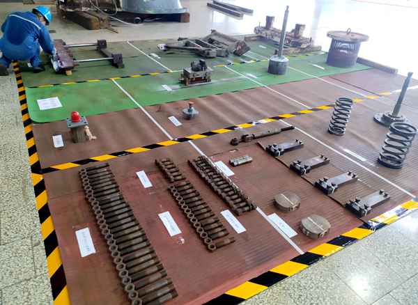 針對“#5機(jī)高背壓轉(zhuǎn)子更換”現(xiàn)場場地廣、設(shè)備多,零配件繁瑣,區(qū)域內(nèi)檢修項(xiàng)目多、交叉作業(yè)多的情況,項(xiàng)目部提出了現(xiàn)場分區(qū)作業(yè),設(shè)備、配件定置化擺放,打造“標(biāo)準(zhǔn)化”檢修現(xiàn)場的目標(biāo)。