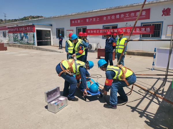 6月16日,商洛項(xiàng)目部組織開展“高處觸電急救”應(yīng)急演練活動(dòng),旨在提高作業(yè)人員對(duì)高處觸電事故的現(xiàn)場(chǎng)應(yīng)急處置能力、掌握受傷人員的緊急救護(hù)程序及方法、檢驗(yàn)各救援小組應(yīng)急反應(yīng)能力。商洛發(fā)電安健環(huán)部、設(shè)備部觀摩了此次演練。