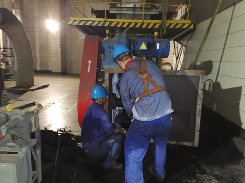 因受近期市場不利因素影響,煤炭質(zhì)量較差,導致除灰系統(tǒng)管道、閥門故障頻頻,鍋爐制粉系統(tǒng)缺陷接連不斷,設備搶修、維護工作量激增。6月22日晚上8點,因煤質(zhì)原因?qū)е?4爐甲、乙給煤機及磨煤機入口管道煤粉堵塞達5米之長,嚴重威脅設備安全運行,消除隱患迫在眉睫。面對嚴峻挑戰(zhàn),項目部快速響應,立即集結(jié)管理干部和班組支援人員趕赴現(xiàn)場,和制粉班員工并肩作戰(zhàn)。