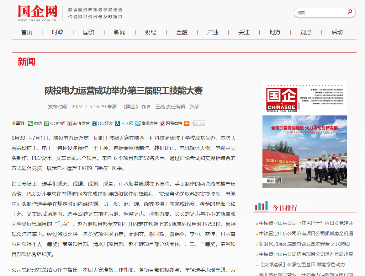 6月30日——7月1日,公司第三屆職工技能大賽在陜西工程科技高級技工學校成功舉辦。集團經營管理部主任梁軍軍參加閉幕式并為獲獎選手頒獎。陜能股份總經濟師楊玉林、生產技術部主任王軍泓出席開幕式。