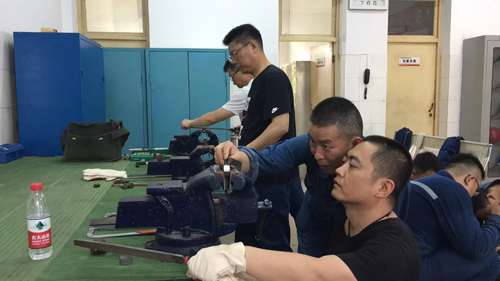 鉗工組針對近期高溫天氣及時調整方案,采用專題培訓和模擬考試相結合的方式,加強選手專業知識儲備、職業素養提升。焊工組結合今年比賽范圍擴大的實際,重點強化選手對鋼板對接仰焊、T型角焊、管板水平固定焊接等技能的培訓。電工組以實際案列為切入口,從整個程序編寫、文件上傳下載,到設備調試的每一個細節,從框架搭建到整個控制網絡組建的每一個環節,選手都一絲不茍、認真訓練,力爭在比賽中取得優異成績。
