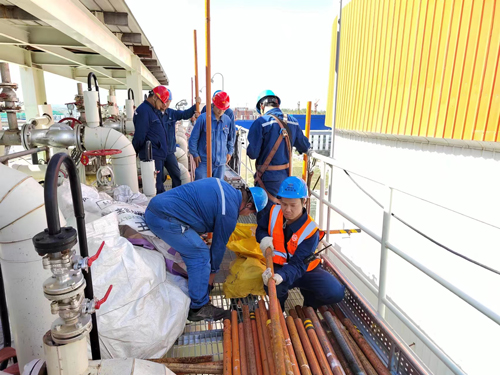 低溫省煤器頂上、水源地輸水管線上……處處都有運營人的身影,他們承受著紫外線的侵襲,揮灑著汗水,經受著“烤”驗,為業主方機組順利“迎峰度夏”提供堅實保障!