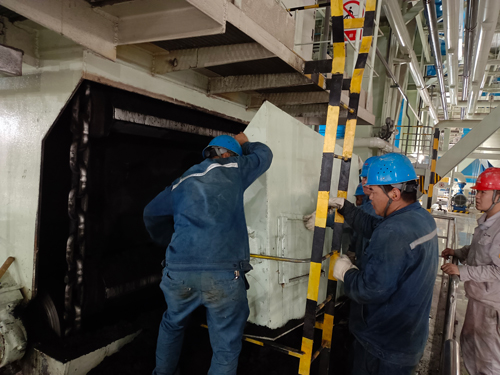 7月3日凌晨4點,1#爐撈渣機由于煤質原因和頻繁吹灰跳閘,項目部負責人帶領鍋爐班全體人員進入現場清渣搶修,用鐵鍬奮力清除斜坡段余渣,緊握金屬管快速破碎焦渣。撈渣機位于爐膛底部,現場十分悶熱。雖然看不到汗珠滑落的場景,但大家的工作服全都濕透了,卻沒有人多說一句抱怨的話。