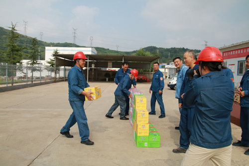 一份清涼,一份關懷。近日,商洛發(fā)電總工程師孫明、副總經(jīng)理湯培英到公司商洛項目部慰問高溫下堅守生產(chǎn)一線的全體職工,對大家“戰(zhàn)高溫、斗酷暑、保安全、促生產(chǎn)”的奉獻精神給予高度贊揚,將防暑降溫飲品送到職工們手中,叮囑大家要注意防暑、保障自身安全健康,確保高溫季節(jié)安全生產(chǎn)工作平穩(wěn)有序開展。