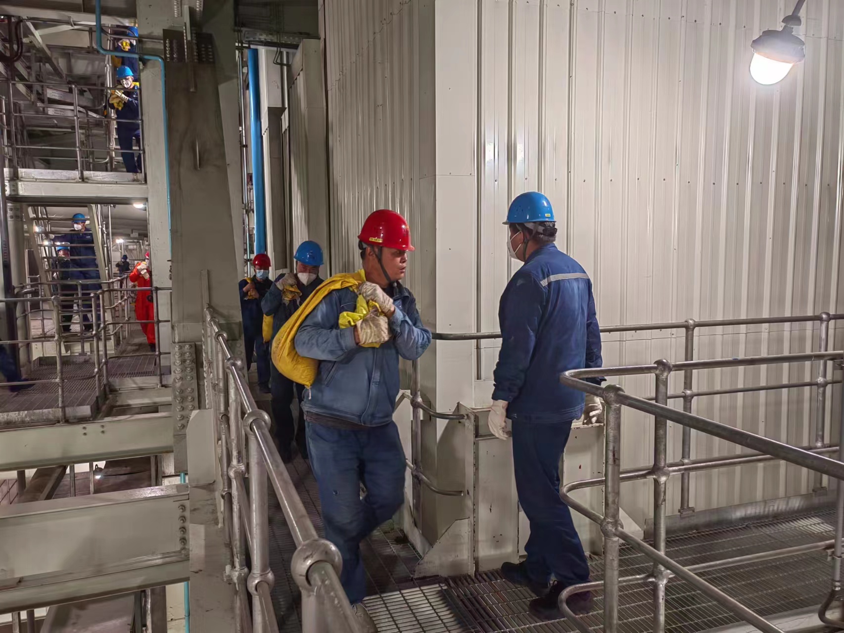 8月14日,一支由黨員、退役軍人、管理人員、青年員工組成的隊伍,趕赴鍋爐房4層進行灰渣袋倒運,室內高溫足以讓人汗流浹背,一千多袋灰渣足以讓平常人畏懼退縮。大家佩戴好勞動防護用品,鏟灰、掃灰、裝袋,井然有序,幾十斤重的灰渣袋,兩手一甩送上肩膀,分量輕的,自我“加壓”再來一袋。