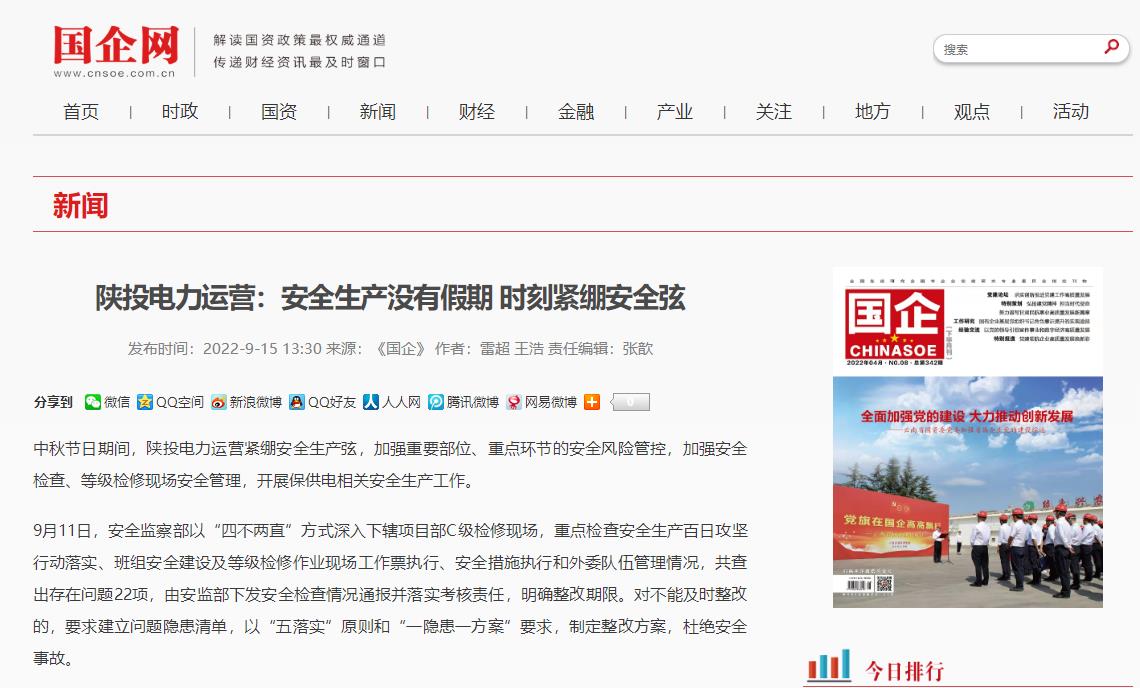 中秋節(jié)日期間,電力運(yùn)營緊繃安全生產(chǎn)弦,加強(qiáng)重要部位、重點(diǎn)環(huán)節(jié)的安全風(fēng)險(xiǎn)管控,加強(qiáng)安全檢查、等級檢修現(xiàn)場安全管理,開展保供電相關(guān)安全生產(chǎn)工作。