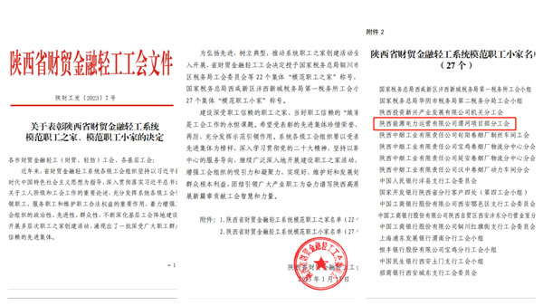 日前,陜西省財貿金融輕工工會印發《關于表彰模范職工之家、模范職工小家的決定》,公司渭河項目部分工會榮獲“模范職工小家”稱號。