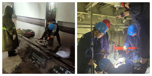 黃陵店頭電廠#1機(jī)組汽泵再循環(huán)管道止回閥前管道法蘭墊子泄漏造成廠房內(nèi)漏水,影響機(jī)組安全運(yùn)行。接到消息后,項(xiàng)目部值班人員立即奔赴現(xiàn)場清理#6皮帶積水,保證輸煤設(shè)備安全。經(jīng)全體人員連續(xù)作業(yè)5小時(shí),圓滿完成防水、疏導(dǎo)漏水、清理積水任務(wù),保證了機(jī)組安全運(yùn)行,并在機(jī)組具備更換止回閥法蘭墊子條件后再次投入搶修工作。