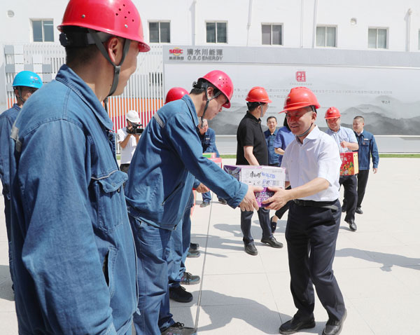 李元一行走進項目部生產一線,看望慰問職工,送上防暑降溫品,感謝廣大職工恪盡職守為集團公司高質量發展做出積極貢獻,叮囑大家在保證安全生產的同時,注意勞逸結合,強調企業要把防暑降溫工作做到位,把員工的安全和健康放在首位,創造良好的工作環境,確保高溫季節生產安全有序推進。
