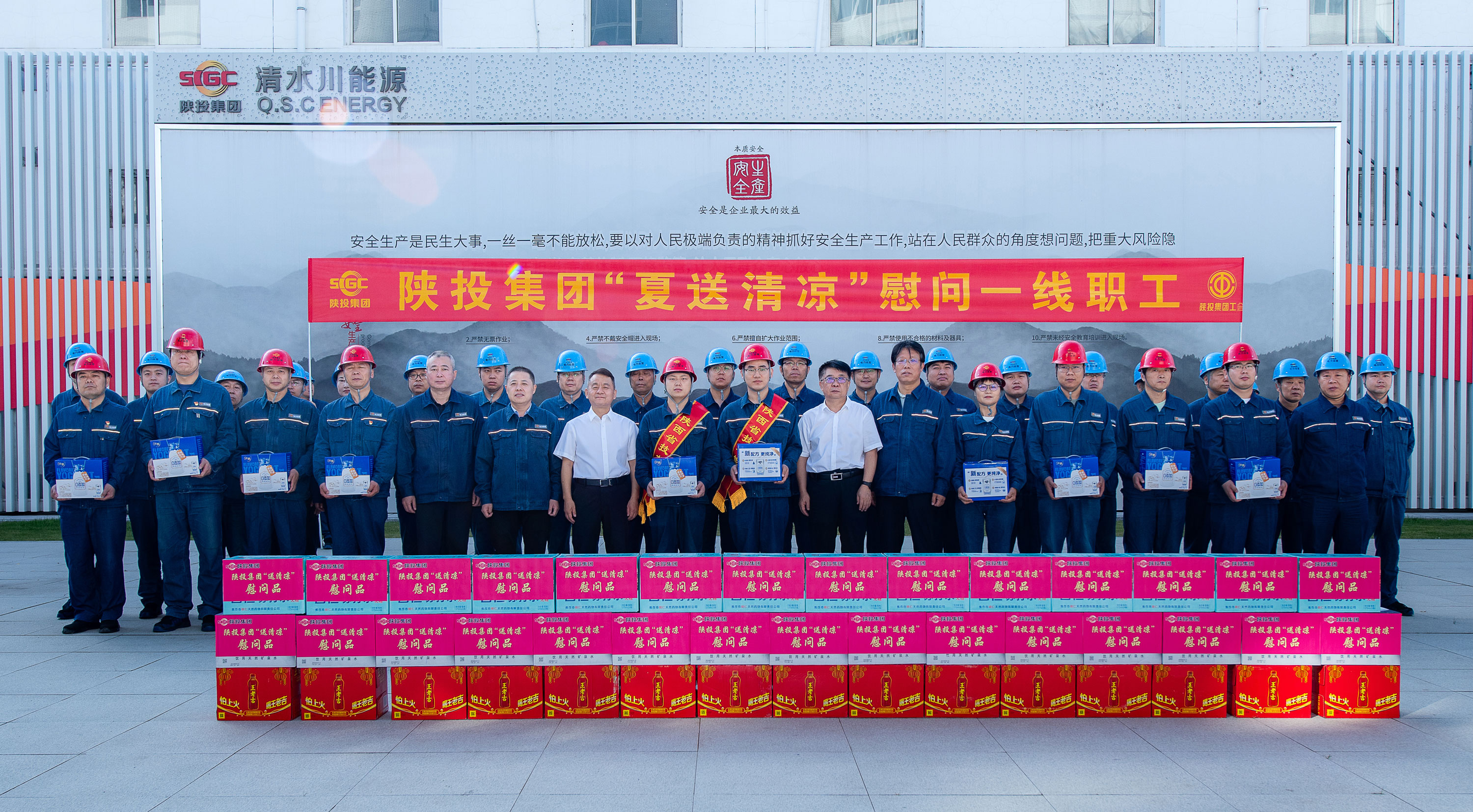 7月13日上午,集團黨委書記、董事長李元,集團黨委委員、陜西能源總經理王棟一行到公司清水川項目部慰問。