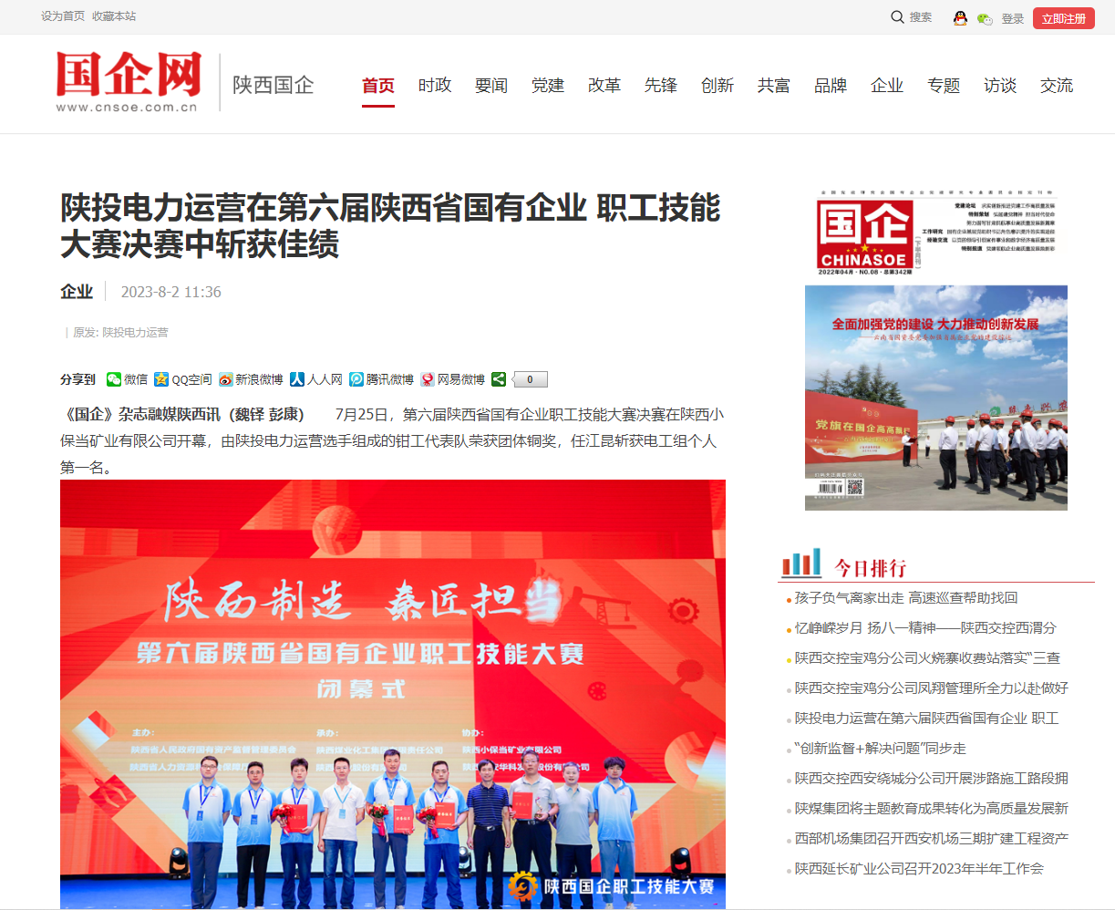 7月25日,第六屆陜西省國有企業職工技能大賽決賽在陜西小保當礦業有限公司開幕,公司選手組成的陜投集團代表隊榮獲鉗工組團體銅獎,任江昆斬獲電工組個人第一名。