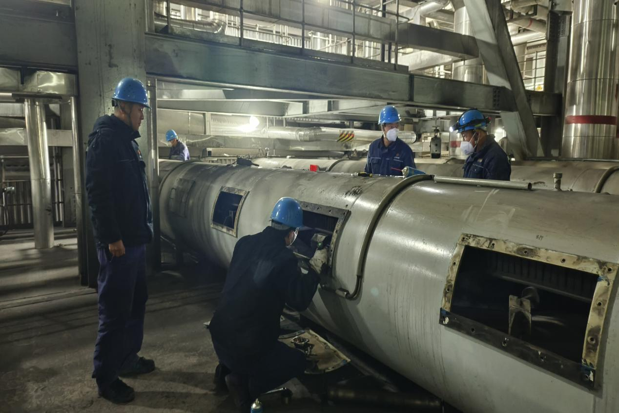 在更換皮帶的過(guò)程中,由于設(shè)備內(nèi)部空間有限,給搶修工作帶來(lái)一定的難度,操作中必須小心翼翼,避免與其他設(shè)備發(fā)生碰撞。檢修人員認(rèn)真研究鍋爐結(jié)構(gòu)和皮帶安裝方式,拆卸螺絲、搬運(yùn)皮帶、安裝調(diào)整……一米一米地把舊皮帶卸下拉到指定位置,再將新皮帶拉到皮帶機(jī)上就位,套上機(jī)械設(shè)備,調(diào)節(jié)好角度。