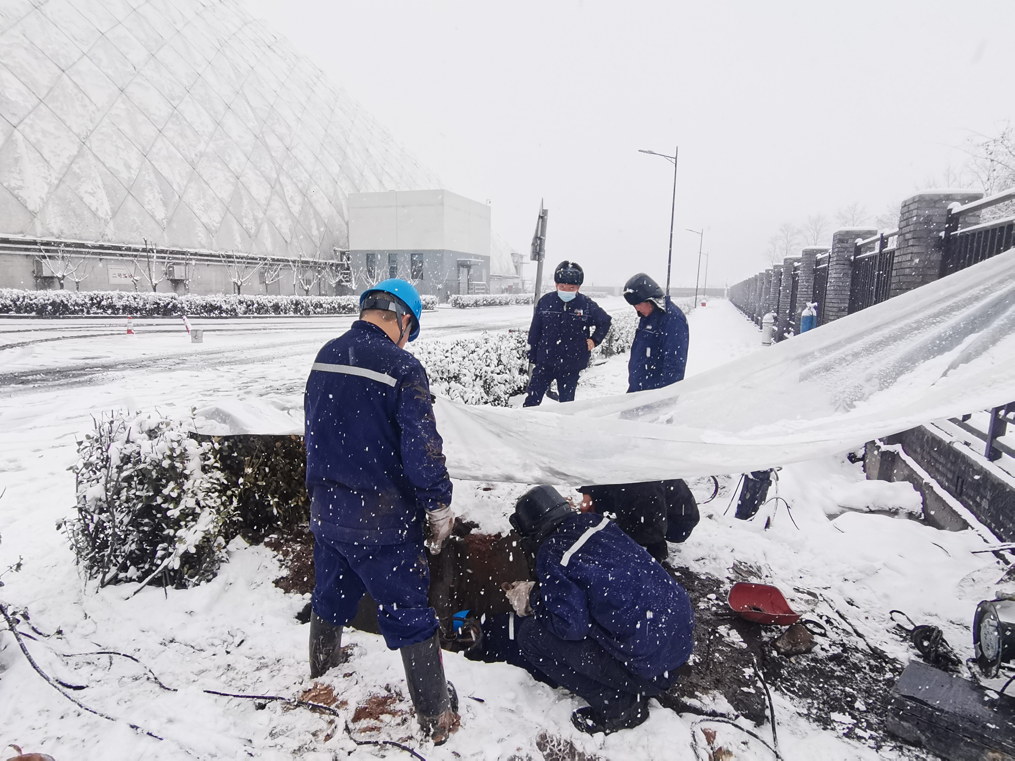 “消防水系統(tǒng)停運(yùn),漏點(diǎn)還是無法隔離,我們只能一邊抽水一邊干!”工程師常征帶領(lǐng)搶修人員,在漫天飛雪中進(jìn)入溝道開始施工。因法蘭間隙較小,他們果斷采取斷口處理方案,從閥門連接管道切割、打磨、尺寸測量下料,到組對與焊接,整個(gè)作業(yè)過程有條不紊、井然有序。18:25,隨著最后一顆螺栓復(fù)緊完畢,歷時(shí)10個(gè)小時(shí),提前50分鐘完成消缺任務(wù),而他們早已變成了一個(gè)個(gè)“雪人”。