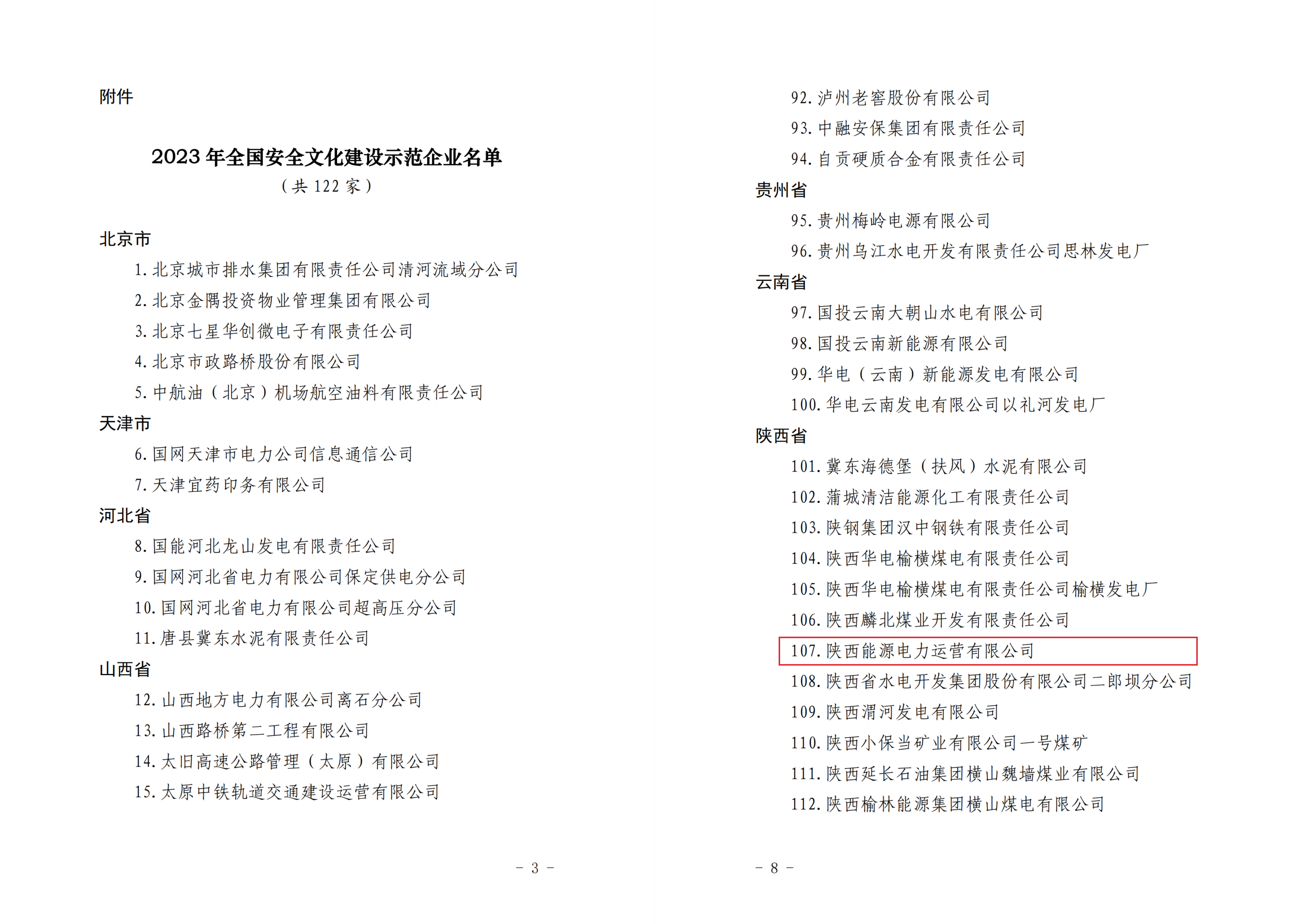 3月28日,公司被中國安全生產協會命名為“2023年全國安全文化建設示范企業”。這是公司繼實現安全生產標準化一級達標和取得“省級安全文化建設示范企業”稱號后,在安全管理方面取得的又一重要突破,標志著公司培育“想安全、會安全、能安全”本質安全型員工,建立安全文化長效機制取得重大進展。