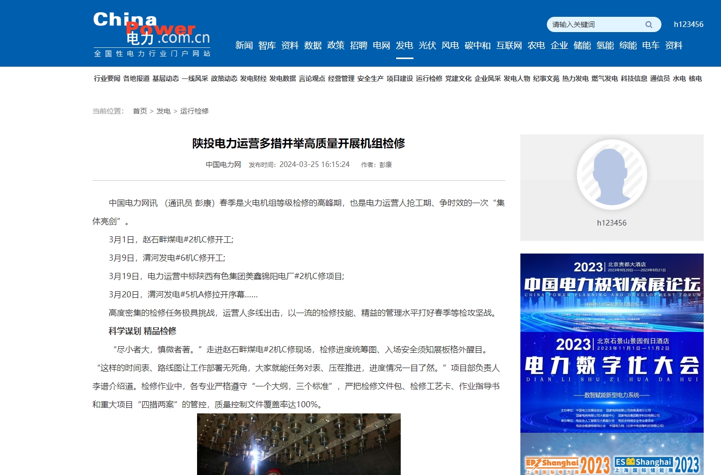 3月19日,電力運營中標陜西有色集團美鑫錦陽電廠#2機C修項目;