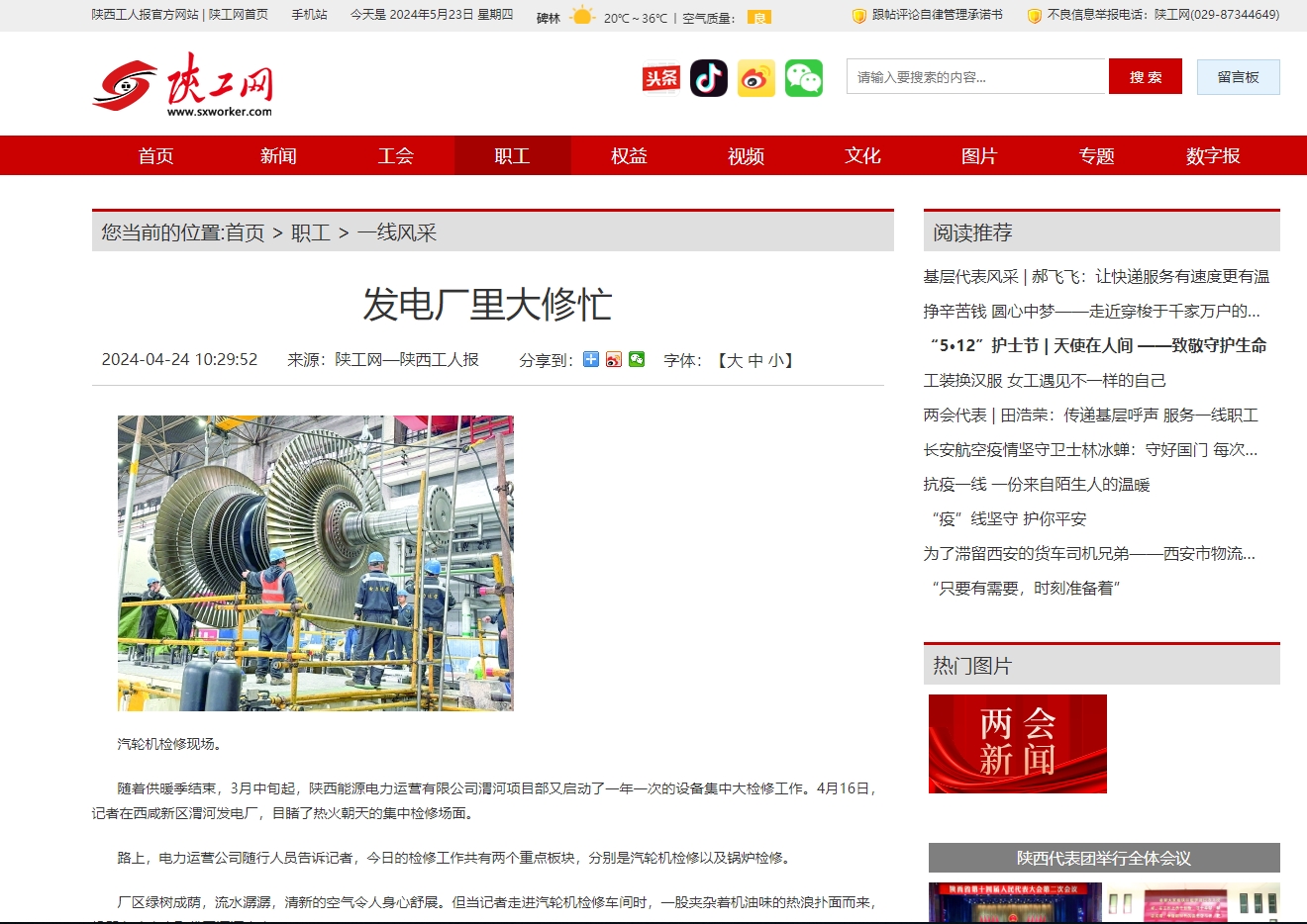 隨著供暖季結(jié)束,3月中旬起,陜西能源電力運(yùn)營有限公司渭河項(xiàng)目部又啟動了一年一次的設(shè)備集中大檢修工作。4月16日,記者在西咸新區(qū)渭河發(fā)電廠,目睹了熱火朝天的集中檢修場面。