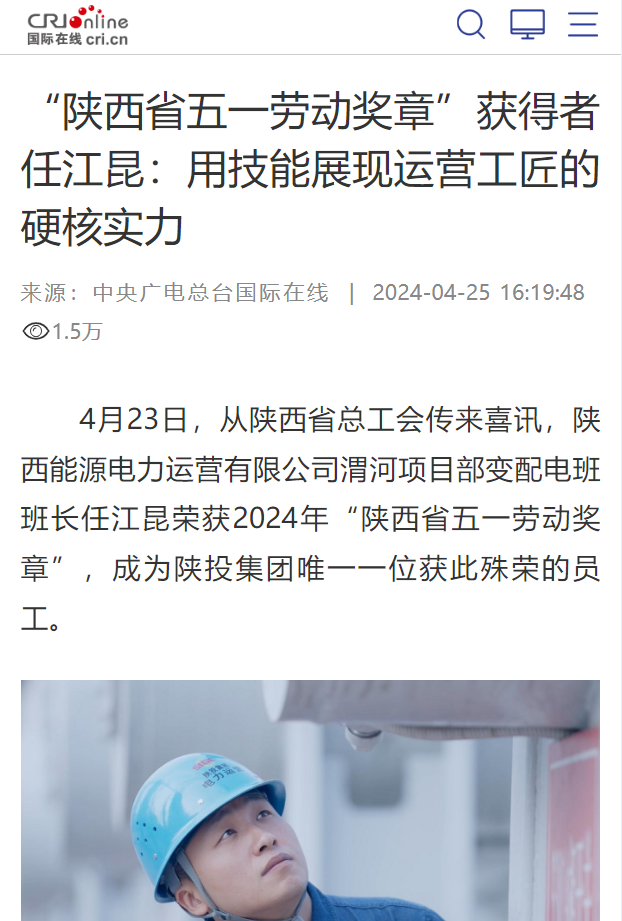 4月23日,從陜西省總工會傳來喜訊,陜西能源電力運營有限公司渭河項目部變配電班班長任江昆榮獲2024年“陜西省五一勞動獎?wù)隆保蔀殛兺都瘓F唯一一位獲此殊榮的員工。