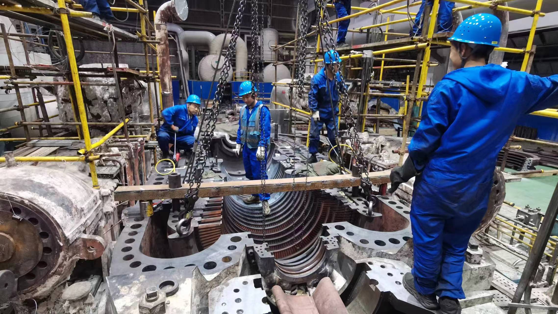 2024年11月14日,渭河項目部#5機供熱轉子更換現場,項目部負責人喻繼峰興奮地說。
