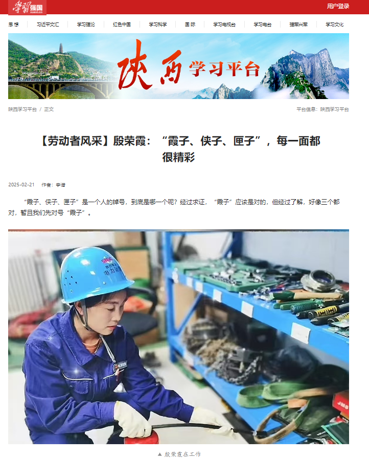 “霞子”真名殷榮霞,電力運營趙石畔項目部電氣專業檢修工,一個地道的陜北姑娘,1米6左右,梳個大辮子,大眼睛,兩腮略帶一點風沙紅,膚色看著很健康,用含蓄一點的詞來表達靚麗程度,就是“穿著工裝也不失色”。女人愛美的天性,沒有讓她因為在轟隆的機房內工作,要接觸灰塵、要流汗而停止,“唇彩、眼影、畫眉……”時不時還會閃亮登場,伴隨她走進廠房一起工作,就像名字中的“霞”字一樣,不失靚麗。