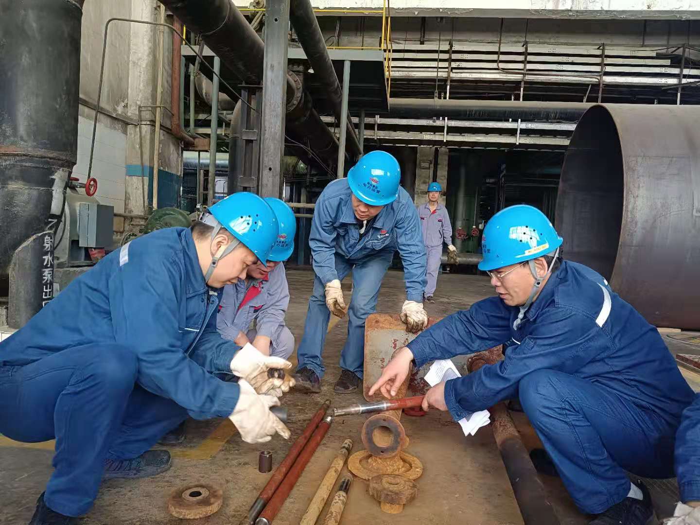 “排水泵雖然不起眼,卻是多級泵,軸系長達3.5米,運轉時易發生串軸,一定要按工藝精心安裝?!边M了現場,葉楓正組織青工安裝軸系,有人操作不規范時,老喻上前手把手向大家講解安裝程序。不時有人湊上來請教問題,將多年積累的經驗毫無保留地傳授?!霸O備維護是個技術活,更是個良心活,每一項操作都關系著機組安全,不能有一絲大意?!崩嫌髡f。