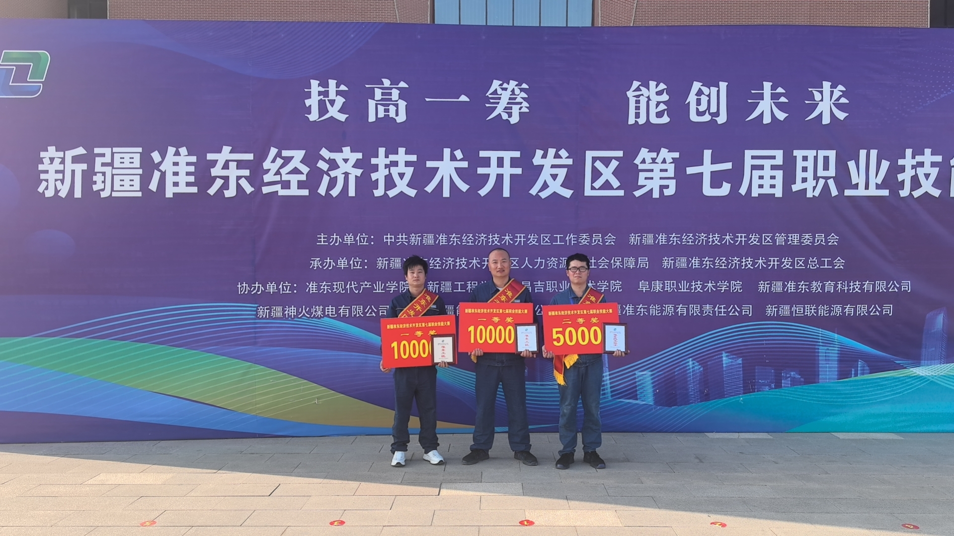 6月12日,在新疆準東經濟技術開發區第七屆職工技能大賽中,新疆分公司楊成武、張程包攬叉車組、焊工組冠軍,榮膺大賽“準東工匠”稱號;王毅飛勇奪鉗工組亞軍,被授予“準東技術能手”;閆玉婷在行車操作項目中躋身前十。