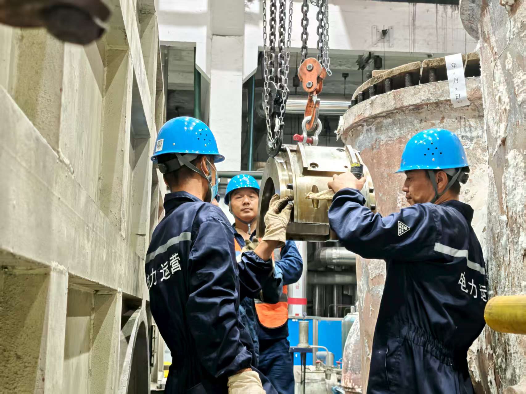 9月5日,#4機(jī)12.6米汽輪機(jī)本體大修現(xiàn)場(chǎng),隨著起重指揮一聲清脆的哨響,行車緩緩運(yùn)行,吊鉤精準(zhǔn)移動(dòng)至指定位置,碩大的外缸剛被平穩(wěn)提起,5名嚴(yán)陣以待的作業(yè)人員立即上前,仔細(xì)檢查、精心測(cè)量,各項(xiàng)工作有條不紊展開(kāi)……