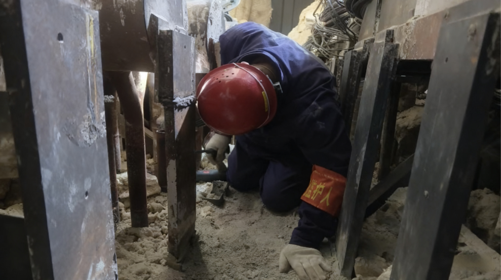 在悶熱逼仄的角落,焊工張程半蹲著身體,焊槍在他手中穩(wěn)定而精準地移動。弧光閃爍,汗水浸透工服,他卻無暇顧及。身旁的同事同樣彎著腰為他遞工具、打燈光。空間狹窄,但運營人對焊接質(zhì)量的要求從未打折,每一朵焊花都閃爍著責(zé)任的光芒。