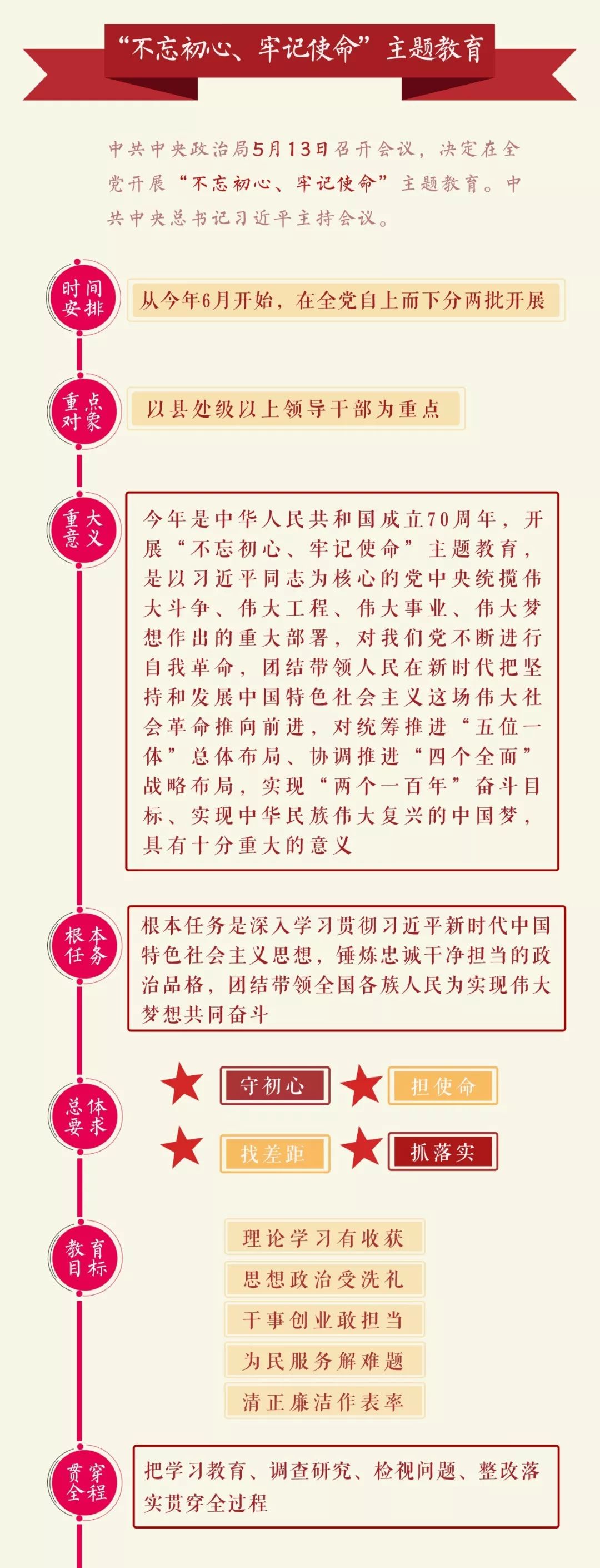近日,中央決定,從今年6月開(kāi)始,在全黨自上而下分兩批開(kāi)展“不忘初心、牢記使命”主題教育。