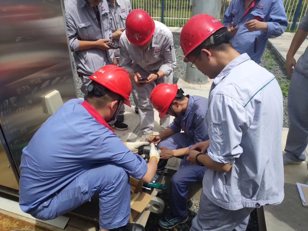 7月22日,電氣試驗中心人員趕赴商洛發電公司,利用新購置的德國威卡氣體密度繼電器校驗儀和氣體微水高精度測量儀對其在裝的GIS(氣體絕緣金屬封閉開關設備)氣室進行SF6(六氟化硫)密度繼電器校驗、微水測試以及氣體組分含量測試等試驗。面對新進的精密儀器,試驗人員邊學習,邊摸索,嚴格遵循國家標準和操作規程的檢測項目和周期,逐一對設備進行試驗,并對結果進行分析比對。