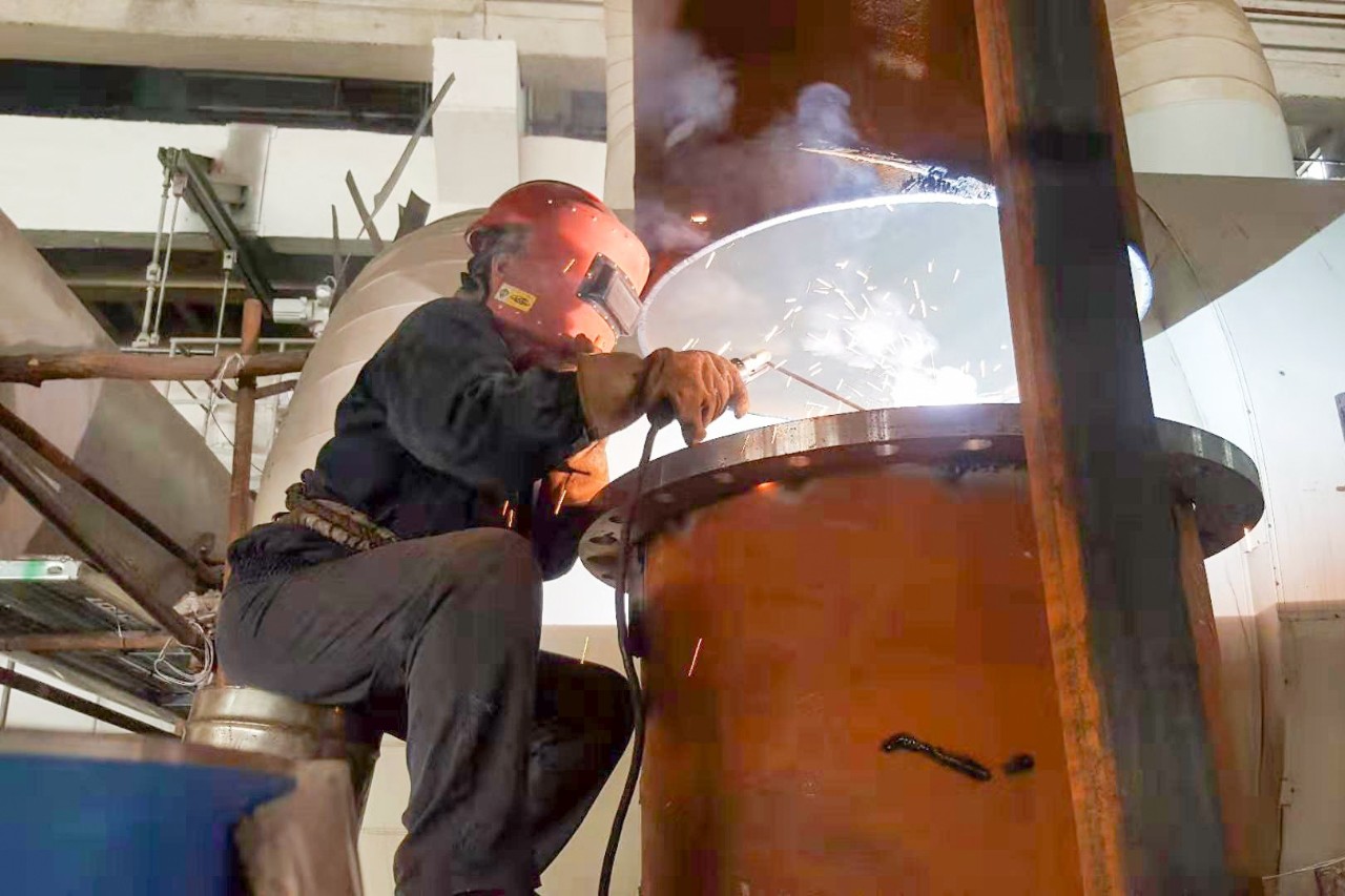 尖峰加熱器水側加裝出、入口門是此次大修的重點工作,需要在外徑920MM的管道上進行斷口、制口,再將超過半噸重的閥門安裝到位,多工種交叉作業,對安全和技術要求極高,工作難度極大。為此,項目部成立專門小組負責現場技術、安全工作,以便隨時掌握施工進展,及時處理各種應急情況。目前,此項工作正在緊張有序進行當中。