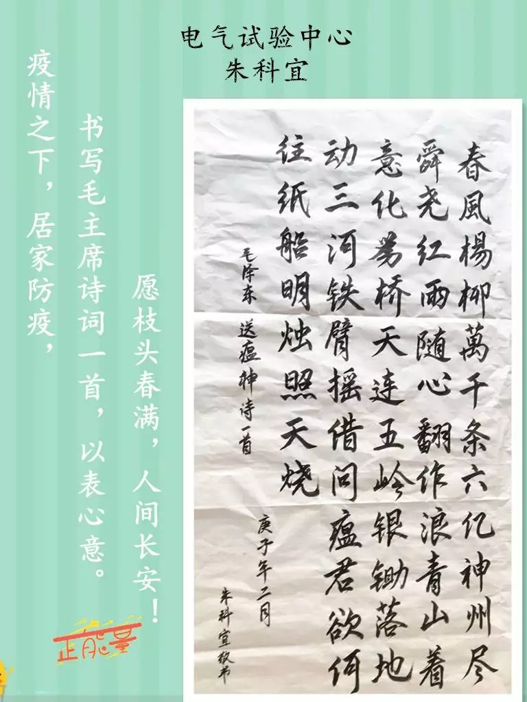 疫情之下,居家防疫,書寫毛主席詩詞一首,以表心意。愿枝頭春滿,人間長安!