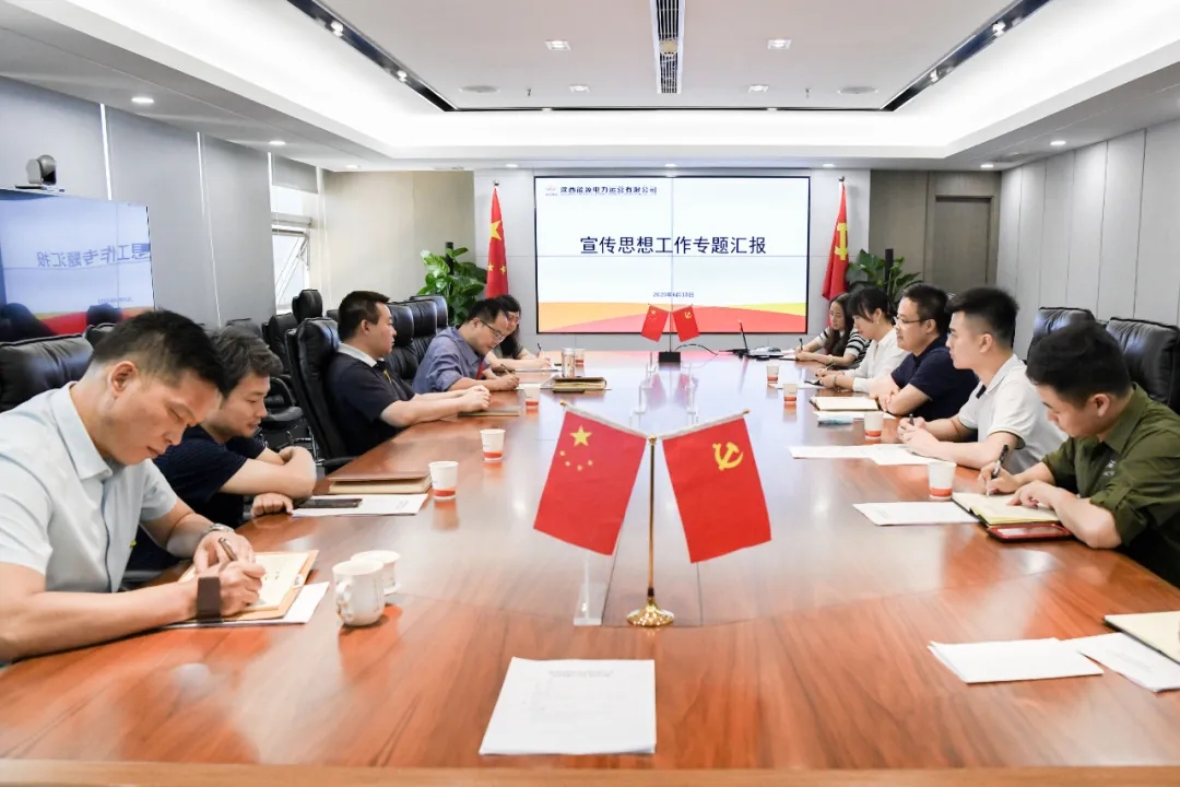 黨委書記、董事長寧軍對調研組一行來公司檢查指導工作表示歡迎,對集團黨委宣傳部長期以來對電力運營的關懷和支持表示感謝。他重點介紹了企業改制轉型及疫情防控期間,公司宣傳思想工作充分發揮“舉旗幟、聚人心”作用,確保職工隊員穩定所取得的成效。