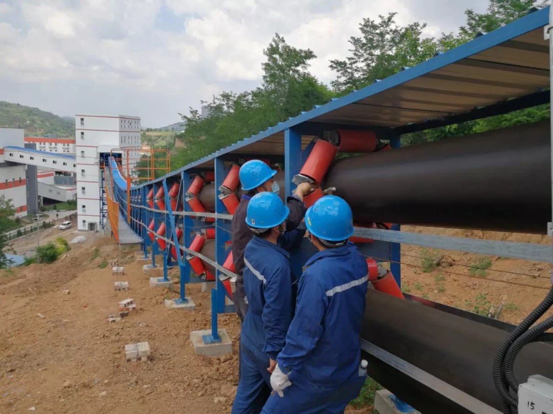 輸煤廠區,長約1.8公里的管狀帶正在進行系統帶電,單體調試,工作人員正一絲不茍排查并消除設備缺陷,順利完成這項節點性任務。