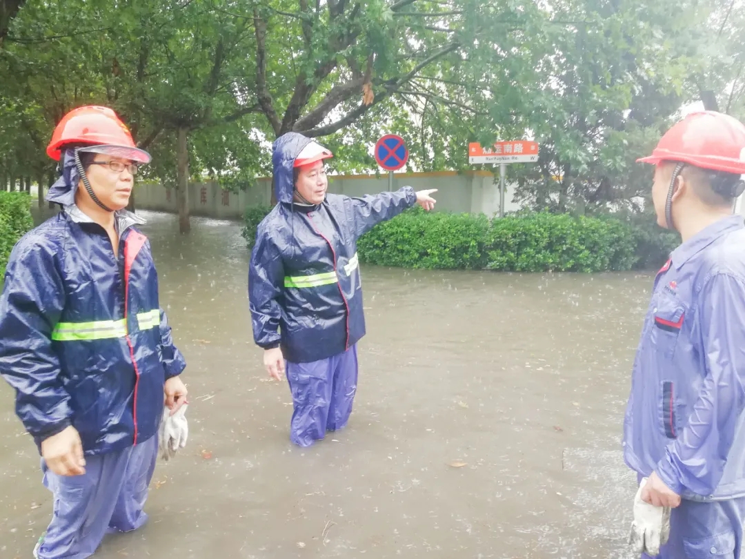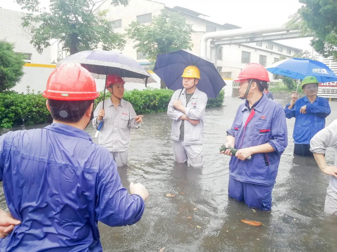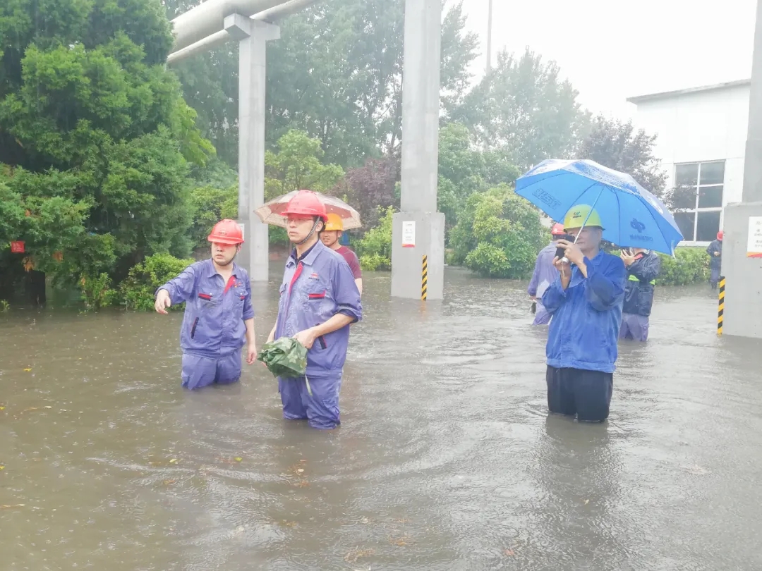瓢潑大雨中,燃輸區(qū)域瞬間水深超過一米,項(xiàng)目部應(yīng)急小組成員來不及換上雨衣雨鞋,就跳入齊腰深的積水中,排查險(xiǎn)情,疏通水道。