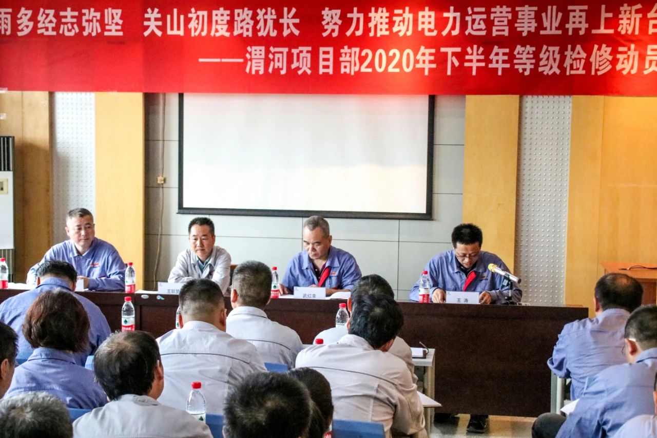 8月18日,渭河項目部召開2020年下半年等級檢修動員會,公司副總經理武紅幸、渭電公司副總經理王聯盟及相關人員100余人參加了會議。
