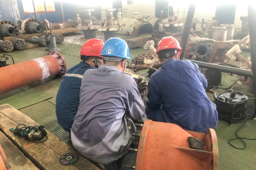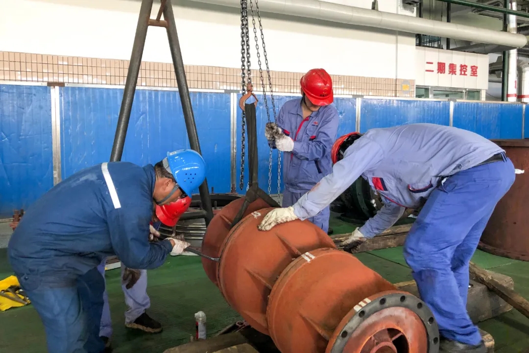 同時,A級檢修的其他工作也在有序推進中:汽輪機中壓缸、低壓缸已完成揭缸,正在進行數(shù)據(jù)測量;循環(huán)水泵大修,泵體部分已經(jīng)解體完畢,正在進行缺陷檢查;凝升泵、低加疏水泵的檢修已進入組裝調(diào)整階段……