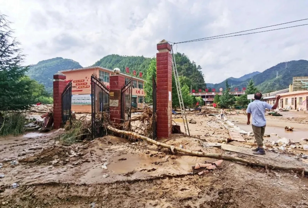 今年8月,商洛市洛南縣“8.6”特大暴雨洪澇災害導致石門鎮明德小學校園和一樓教室全部過水,淤泥遍地,基礎設施損毀嚴重,無法開展正常教學活動。