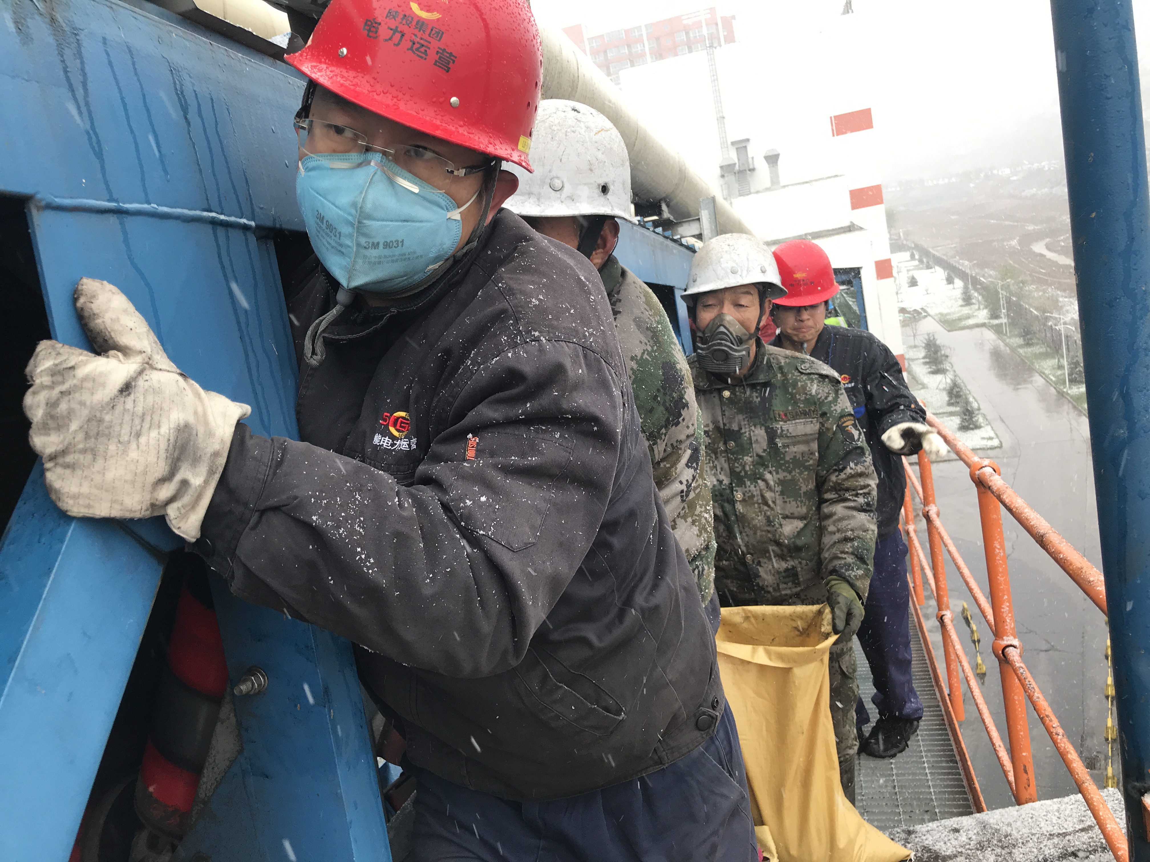 檢修現場天寒地凍,百余米風雪棧橋上羽片雪花飄灑飛舞,連往日覓食的鳥兒們都不知所蹤。但投入工作的四十多人一字排開,分工協作,大家卻得熱火朝天。十一個小時的風雪中奮戰,拆裝近200個托輥,清理出百余袋燃煤,輸煤梗阻成功疏通,試轉一次成功。